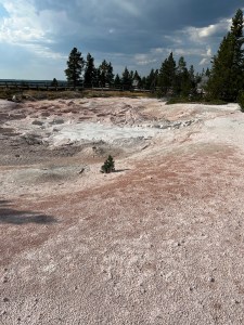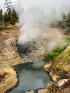 When we observed the paint pots this past trip, we had rain earlier in the day. As a result, we were able to see the mud pots in two different stages. There was one pot which had a drier texture and thicker mud flinging into the air. Next to that pot, another one had much looser mud, which looked almost as if it was boiling. Artist Paint Pots is definitely worthy of a stop on your Yellowstone geothermal tour.