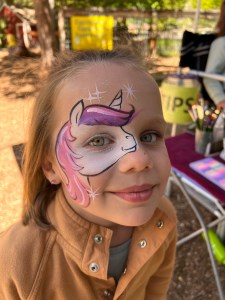 Perhaps our favorite part was the face painter. We decided to splurge and let the kids get their faces painted, something we almost never do. And the lady who worked there did not disappoint! Kinsley wanted a peacock, which turned out beautifully. Addy wanted a unicorn. But perhaps, my favorite, was Levi’s – who wanted a snow leopard. It wasn’t one she offered, but said she thought she could whip something up. It was amazing!