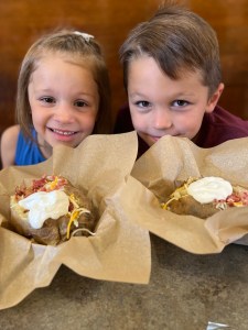 To end our visit, we stopped at the attached cafe where you can get snacks of potatoes. We each had a loaded baked potato for lunch, and it was fantastic.