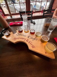 • Snow Eagle Brewing and Grill: We took the kids out to eat on our anniversary here and the food was great. The beer flight was even better!