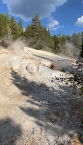 Stuff and Puff geyser is located in Norris Geyser Basin, so you can hit it on the same time as visiting Steamboat Geyser and Porkchop Geyser. You can access it on the Back Basin trail at Norris Geyser Basin. While technically not a steam vent because it is still an active geyser, it is highly unpredictable as to when eruptions will occur. The reason I listed it here is because of the connection between geysers and fumaroles. When geysers are building pressure, they are essentially just steam vents producing lots of steam! And Stuff and Puff turned out to be a favorite of our kids because it produced the hissing noise typical of powerful steam vents. We stood and listened to it for some time.