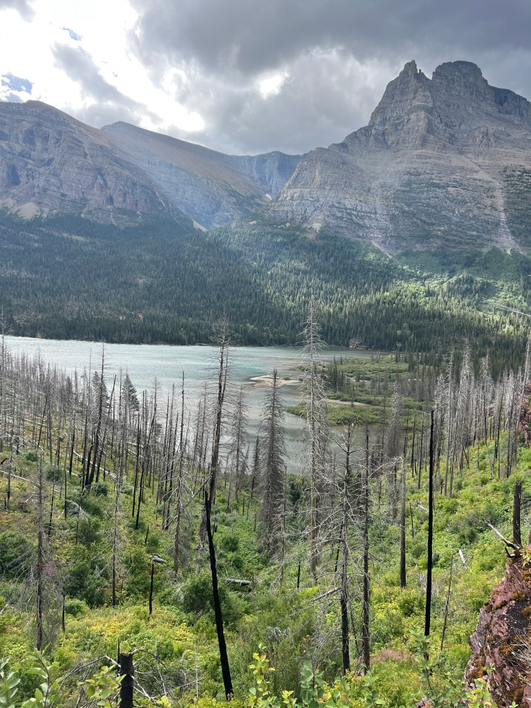 Because of our special moment, we knew we wanted to take the kids back to this hike in particular. Some things have changed since our last visit eleven years ago! First, this hike is another popular hike in the park, meaning if you see a parking spot, grab it. If you are unable to gnab a parking spot, the shuttle does make a stop at the trailhead, which is accessed right off the road. Secondly, the area was engulfed in a wildfire back in 2015. As a result, the first mile and a half of the trail is walking through some burned out trees. The upside, however, is that you get beautiful views of St Mary Lake as you hike.
