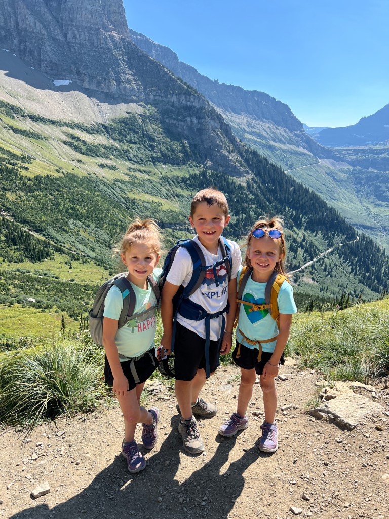 While Going-to-the-Sun Road is a definite must-do when visiting Glacier, I truly believe that the best way to see the park is to get out and hike. There are so many points of interest in the park, and I don’t think there is one “bad hike.” Since Dan was able to take off for a week while we explored Glacier, we were blessed to be able to hike quite a few trails in the park. It was honestly hard for us to come up with our top five!  While some of these hikes were a little more difficult than others, we still were able to complete each of them with our kids. At the time of this trip, our kids were 8, 5, and 5.