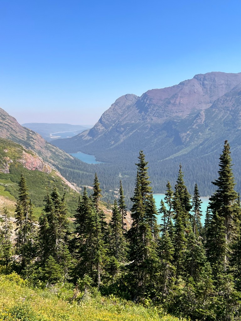 • Pack for ALL the Weather: Packing layers is essential in Glacier. You might do a hike down near one of the lakes that is warm with a slight breeze and then later in the day it’ll be cold and windy. We experienced so many different temperatures, wind, sun, snow, smoke, rain; all in the week we were there. You should also pack sunscreen, as many of the hikes at elevation are exposed with full sun.
