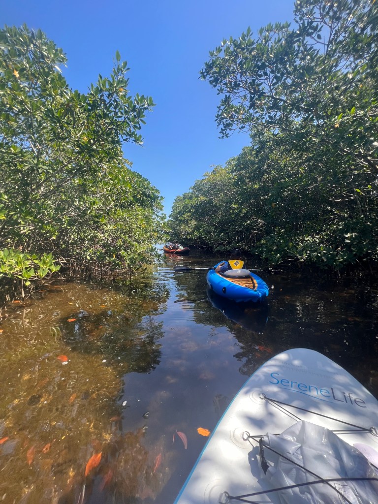 When you aren’t paddling in the mangroves, paddle around the sea grass flats in Biscayne Bay. Here you can find an abundance of different wildlife. Our favorite that we saw were two barracuda. The waters here are shallow and clear, allowing you to see all the way to the bottom of the bay.