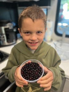 I initially wanted to have the kid pick huckleberries, but I have to admit, I did not know exactly what the berries or the bushes looked like. I knew they great up in the mountains, but I didn’t want to bring home something that could be upsetting to the stomach and pretend that it was hucklberries!