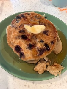Due to the small amount that we purchased, I knew we’d be unable to make a pie, which was my initial thought. We decided to make the next best thing… PANCAKES!